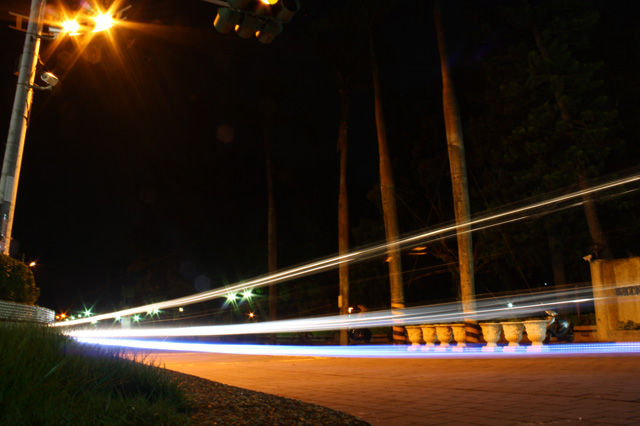 今天晚上跑到學校的天橋練練夜拍,並且測試了一下快慢快門速度的差別。